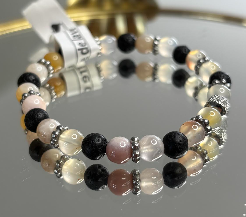 L’agate est une pierre douce d’équilibre et de stabilité : elle accompagne l’apaisement émotionnel, encourage l’harmonie intérieure et aide à avancer avec sérénité.